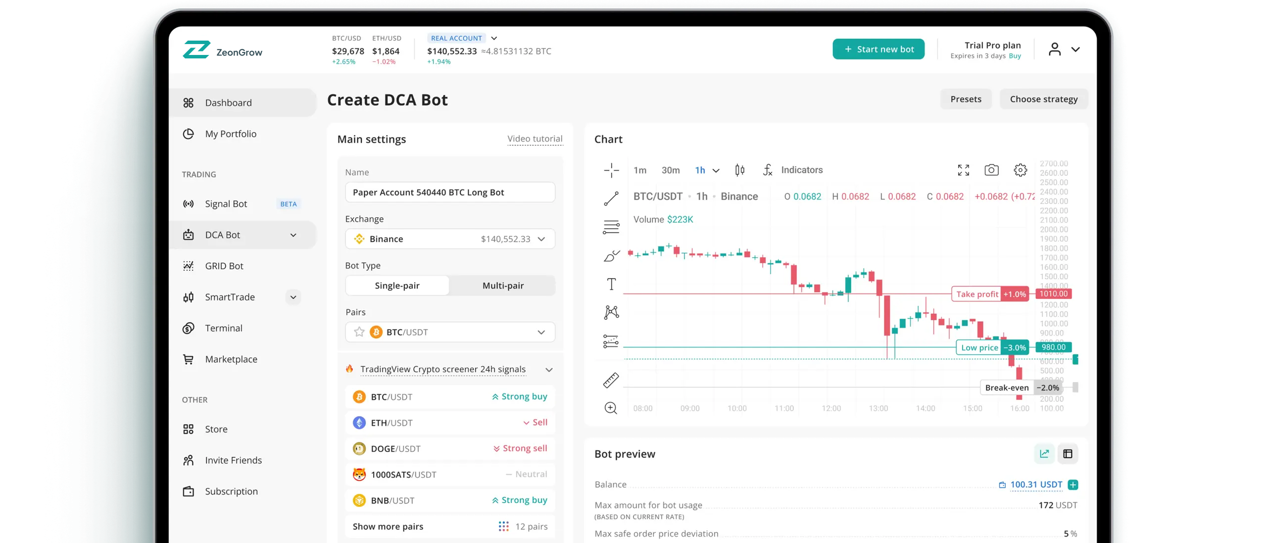 El funcionamiento es muy sencillo: el usuario selecciona uno de tres perfiles de riesgo (conservador, equilibrado o agresivo), y a partir de ese momento la inteligencia artificial se encarga de ejecutar todas las operaciones de forma automática las 24 horas del día. El sistema ajusta constantemente las estrategias según la volatilidad y las condiciones cambiantes del mercado.
